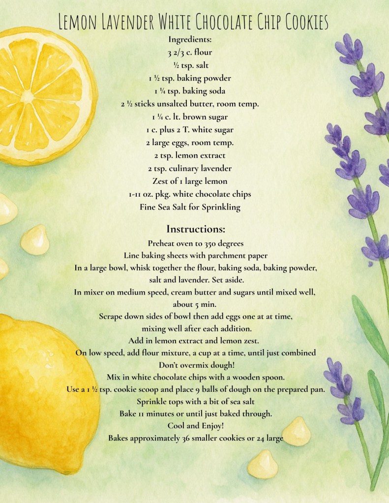 With the temperatures sky, high outside in this Louisiana humidity, I thought a cool, refreshing treat would include something with a tangy, fresh lemon zest. This week’s recipe is reminiscent of the south of France with its lemon – lavender combination. With just a hint of lavender, the intensity can be adjusted to your taste, adding more or admitting it all together. It adds a really unique flavor, so I highly recommend it.